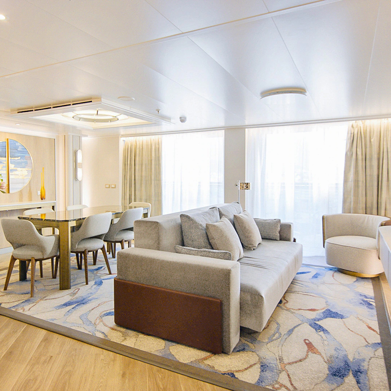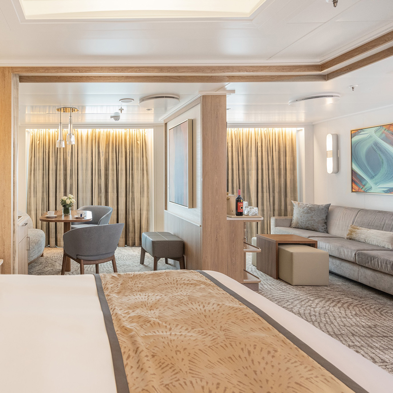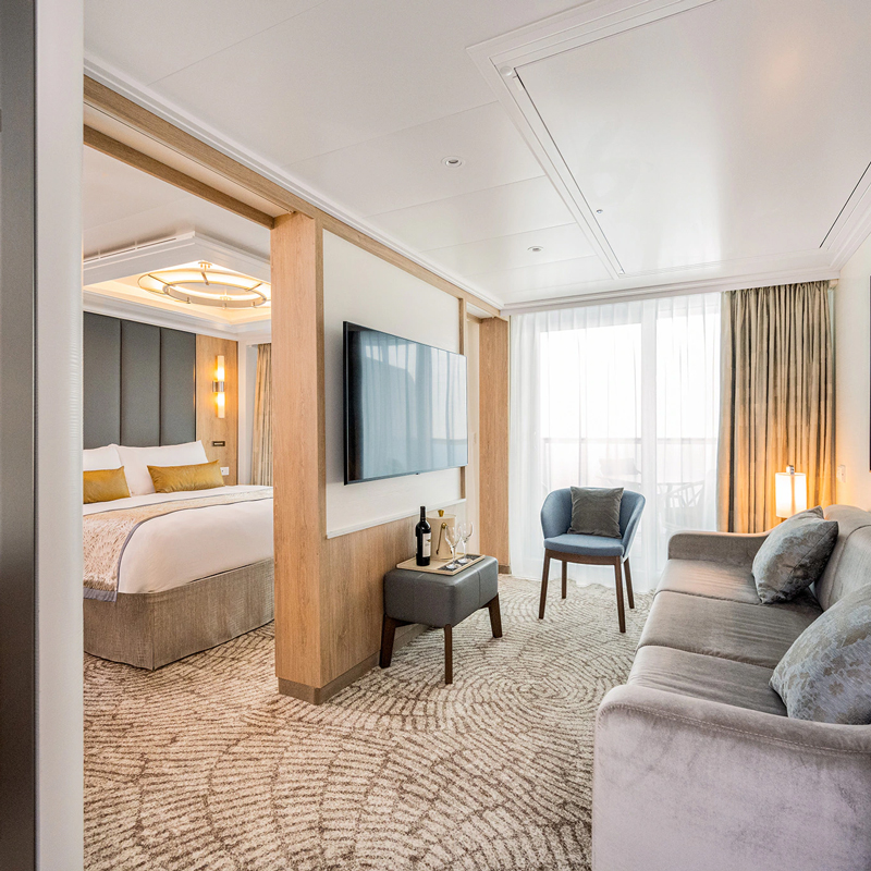 Erleben Sie ultimativen Luxus in einer der grössten Suiten an Bord mit zwei Schlafzimmern, zwei Badezimmern und einem übergrossen Balkon.