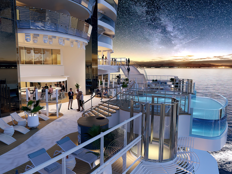Infinity-Pool und Meerblick verbinden sich am Schiffsheck zu absoluter Erholung